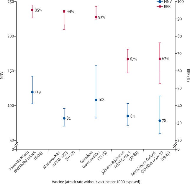 Of course the pharma companies realise from their experience selling cancer therapies that they will get more mileage out of (more impressive) RRR and so use this in vaccine studies. It’s pretty disingenuous, however in the Pfizer vaccine study the main claim in everybody’s mind is that the drug reduced the risk of infection by 95% (RRR). The corresponding ARR was only 0.84% because the incidence of COVID during the whole (6-week) study period was less than 1%.