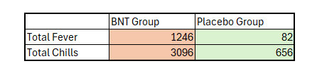 Well, now we get into the nitty gritty of whether there was any way at all that the Pfizer trial “success” was real.. the fevers (and their sister symptoms chills, which if you’ve ever had a bad fever you will know is not something to be sniffed at).