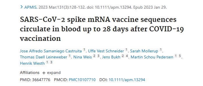We know this to be true because Castruita showed in 2023 that even after 4 weeks there was enough circulating RNA (or DNA) from the COVID-19 vaccines to be able to perform genomic sequencing13.