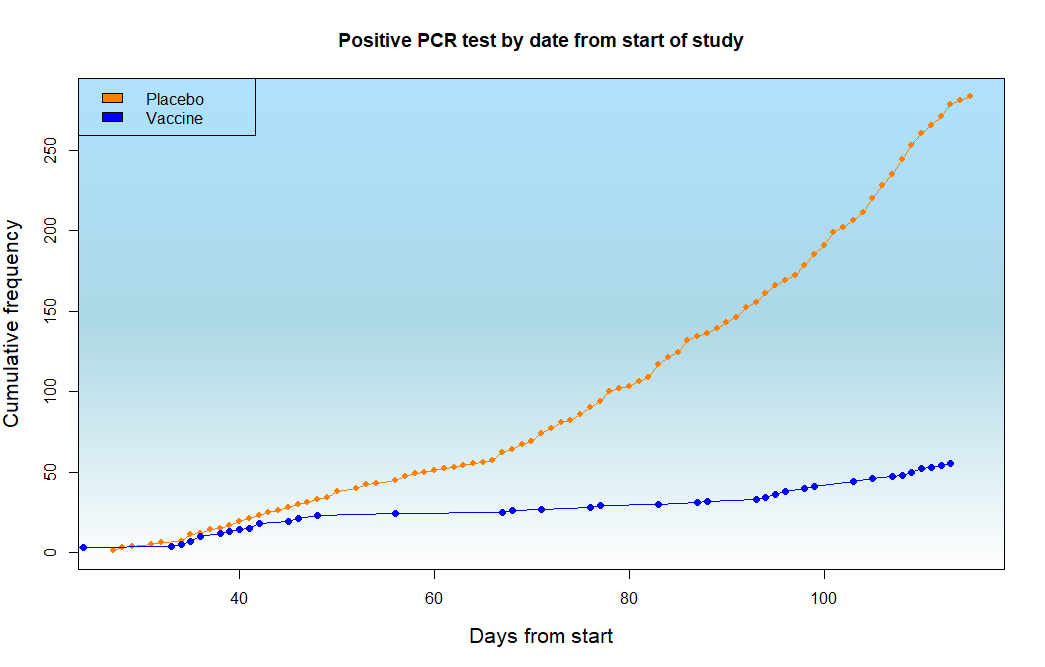 So, let’s start with looking at the number of positive tests according to Pfizer.