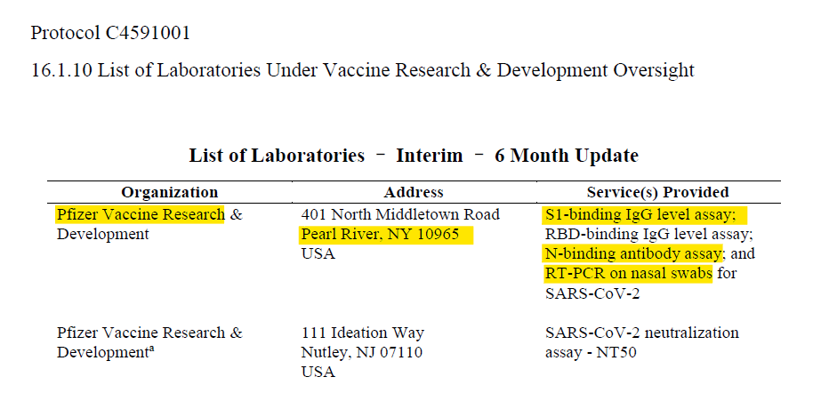 And here is the confirmation5 that the “central laboratory” was at Pfizer’s vaccine HQ…